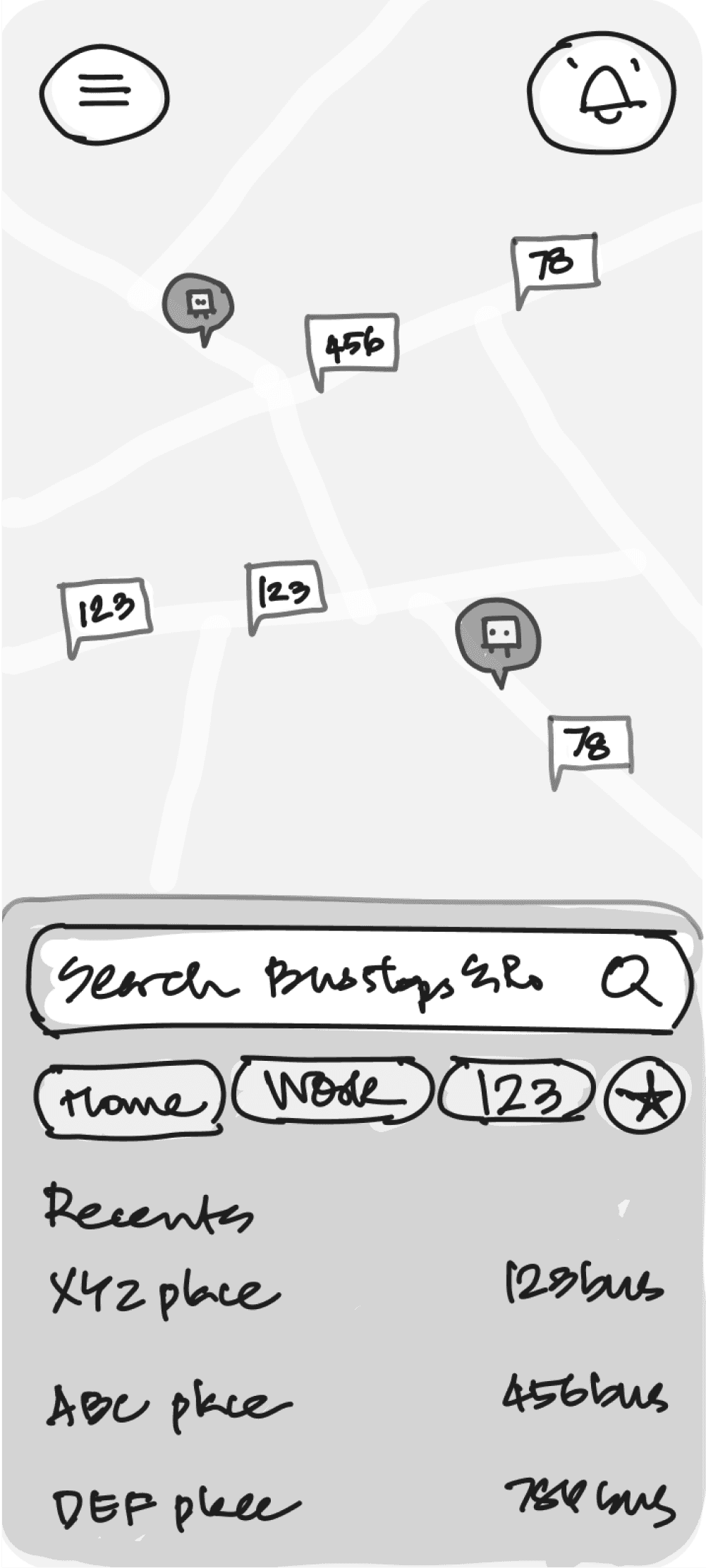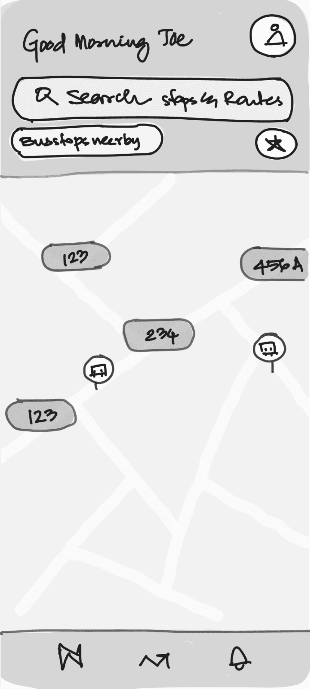 The goal was to design a minimal map interface that has optimal contrast ensuring that labels, routes, bus stops and live buses are visible against the background.
