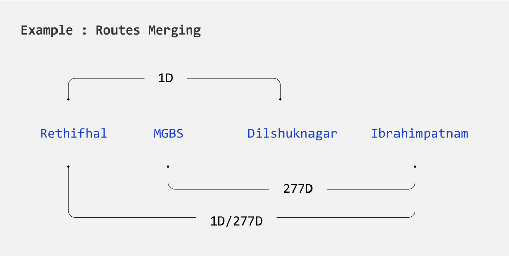 Bus routes are represented by a combination of numbers and alphabets. The numbers can range from one to three digits. The number becomes even bigger when two routes merge to form another route.