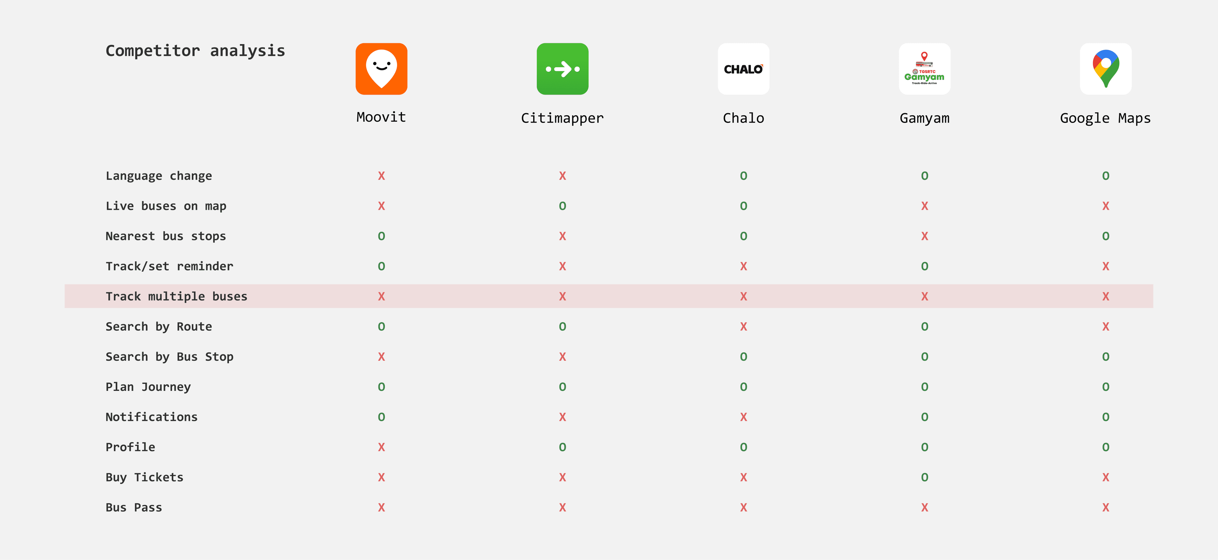 I began to analyse direct competitors like Moovit, Citymapper, Chalo & Gamyam to understand how they structure user flows. Additionally, I refered the waze app to know more about crowdsourcing and the mapping of information.