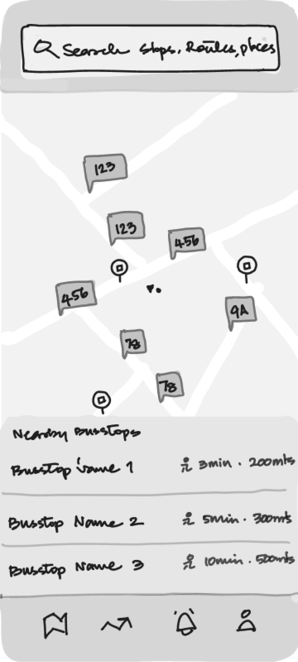 People could search for a bus stop either to know details like arrivals, scheduled buses or to get the directions. The app shall give the walking directions when the bus stop is nearby. But if the bus stop is far, it is considered as destination for which bus routes are shown.